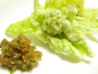ふきのとうの天ぷらに、ばっけみそをつけてるとさらに春を感じられます!