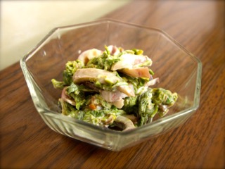 あらかじめボイルしておいたイカと、ふきのとう、マヨネーズと和えます。