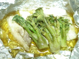 アルミホイルにお好きな具と、天然たらのめを入れます。