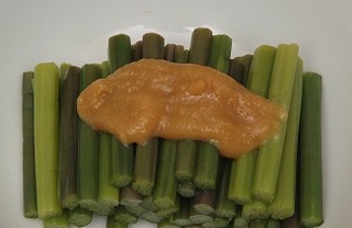 酢味噌をかけて出来上がり!!醤油や、味噌マヨネーズもおいしい!