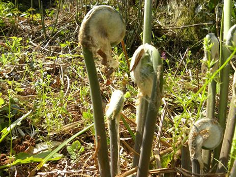 新芽はきれいなうずまき状で、その表面は綿毛で覆われていますが、